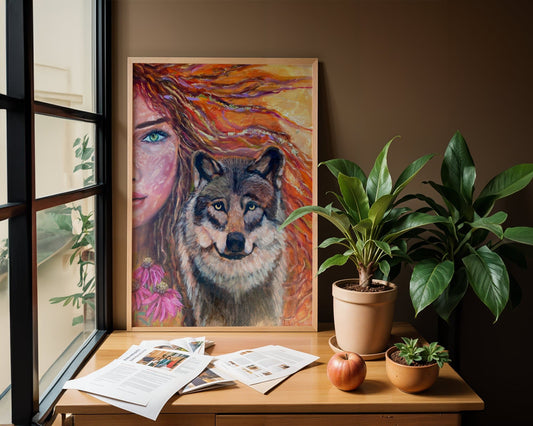 Call Your Inner Wildness - Wolf & Woman Art - Original Mixed Media Painting